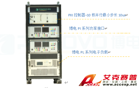 測(cè)試系統(tǒng)包括被測(cè)件鋰離子電池、NIPXIe-8133控制器、功率接口(北京博電自主開(kāi)發(fā)的PI系列模塊化功率接口)、電子負(fù)載、充放電信號(hào)轉(zhuǎn)換板。