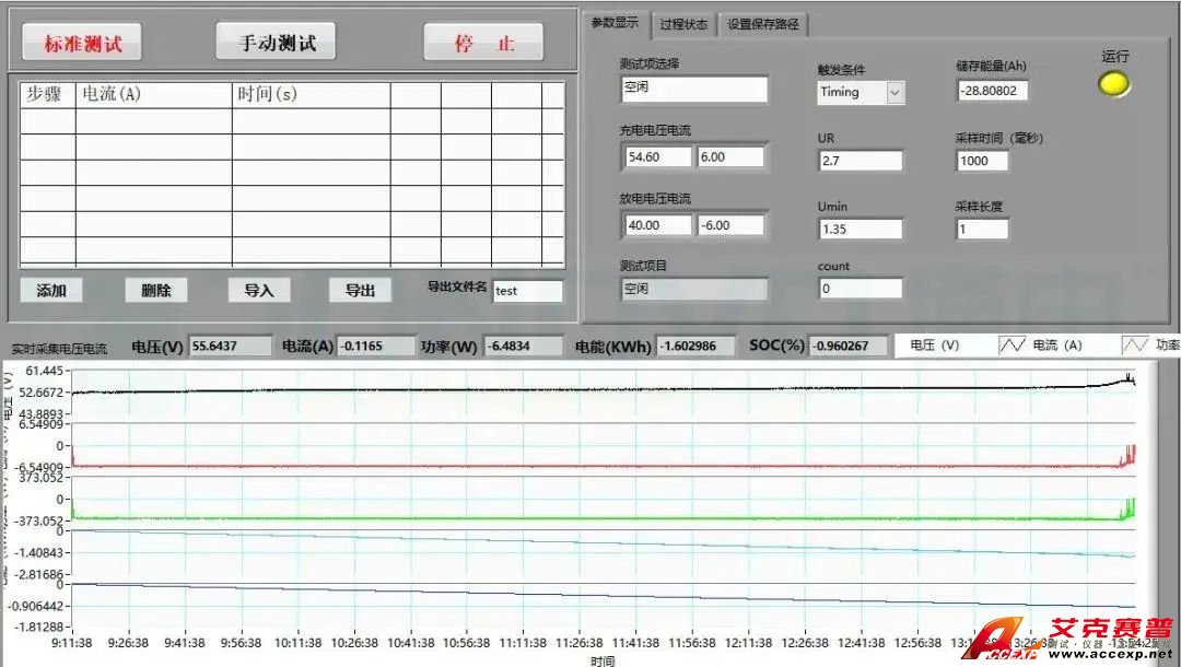鋰離子電池是目前各行業(yè)研究的熱點(diǎn),本文介紹了如何通過(guò)博電公司的功率接口、電子負(fù)載配合NI控制器及采集卡,實(shí)現(xiàn)鋰離子電池自動(dòng)測(cè)試系統(tǒng)。本系統(tǒng)可完成全自動(dòng)和手動(dòng)測(cè)試,高速和高精度的數(shù)據(jù)采集,能夠準(zhǔn)確測(cè)量電池單體性能參數(shù),分析測(cè)試數(shù)據(jù),以對(duì)電池的性能做出評(píng)測(cè),更好的掌握電池在實(shí)際工作中的真實(shí)性能狀態(tài)。進(jìn)一步優(yōu)化電池的使用,提高其使用率。為電池以后安全高效的使用提供了充足的理論依據(jù)和數(shù)據(jù)支持。