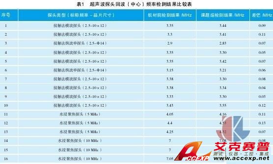 為了驗證測試結果的正確性,采用本文中的裝置和方法對16個超聲波探頭回波頻率進行測試,并與北京航空材料研究院無損檢測研究室探頭頻譜檢測結果進行了比對,結果見表1??梢钥闯?,測試結果與航材院無損檢測研究室檢測結果具有很強的一致性,差值范圍在0.01MHz~0.13MHz之間。