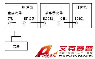 測試裝置由ACCEXP-590脈沖發(fā)生接收器、泰克數(shù)字示波器、超聲波探傷標準試塊、對比試塊和頻率自動分析軟件等組成。