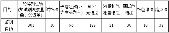 表10 各種分析方法和儀器在化藥鑒別中被選用情況(種、次)