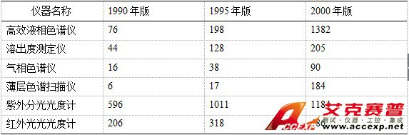 通用分析儀器仍然是農業常規分析測試的主體,附表2~6概述了5個方面的幾種主要分析儀器的應用狀況,該表是依據1999年以前的文獻歸納的,其中尚缺Icp發射光譜儀和原子熒光光譜儀的統計資料,但是從中仍可見出光譜儀和色譜儀是農業常規分析手段的主體地位。科學儀器在我國農業科技發展和農業生產中有著廣闊的市場。