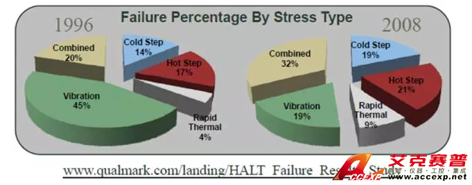 2008年調(diào)研顯示沒有Qualmark加速可靠性技術(shù)支持提供的綜合環(huán)境應(yīng)力,32%的故障模式將被錯(cuò)過(guò)。常規(guī)的設(shè)計(jì)測(cè)試技術(shù)(只有振動(dòng)與只有溫度),與現(xiàn)今的電子產(chǎn)品,找出故障模式的效果是比較差的。