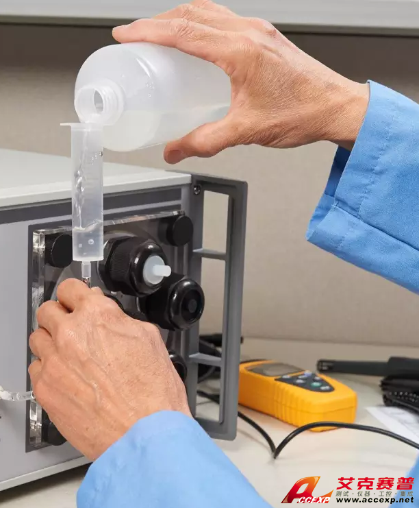 5128A 只需使用純凈蒸餾水即可工作,無需壓縮空氣或其他附加液體。前面板提供液位指示,顯示濕度發(fā)生器內(nèi)的液位狀態(tài)。當液位低于最小值時,只需向儲液罐中加注純凈蒸餾水即可。