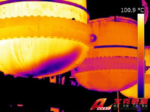 在石油化工企業(yè)中,許多反應釜壓力容器處在高溫高壓條件下工作。為了保護壓力容器外殼在高溫狀態(tài)下免遭內(nèi)部工作介質(zhì)的腐蝕,往往在高溫壓力容器內(nèi)部加上防腐和隔熱內(nèi)襯材料。然而這些襯里在生產(chǎn)過程中長期受高溫高壓高速流動介質(zhì)的沖刷,極易損壞。若襯里發(fā)生鼓包、裂紋、掏空、脫落等情況,一方面介質(zhì)可直接腐蝕壓力容器器壁,另一方面襯里熱阻減小,壁溫升高,會使器壁鋼材強度下降,從而導致裝置變形、傾斜甚至倒塌。采用紅外熱成像技術在壓力容器的運行時對壓力容器進行在線檢測,可以及早發(fā)現(xiàn)襯里的損傷,及時采取補救措施,排除生產(chǎn)過程中的安全隱患。
