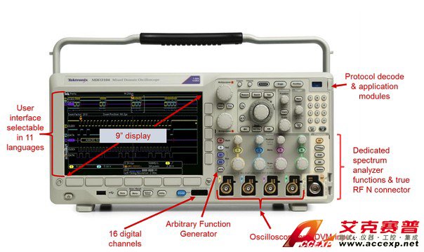 圖1.泰克MDO3000系列集成示波器在一個便攜式包裝中提供了六臺儀器。