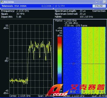基于DSP的設備在現代無線設備的信號控制和頻譜整形中扮演著極為重要的角色,這類設備的測試需求給人們提出了巨大的測試挑戰,因為它們將原來由硬件實現的功能(很容易利用儀器來表征)轉換為軟件來實現。當不與時鐘采樣同步的增益變換、信號濾波和校正因數被放大時,它們本身就表現為頻譜紊亂(spectrum violations)(如圖1所示)。這類事件可能會引起頻譜發射的失效,或者接收器的干擾。