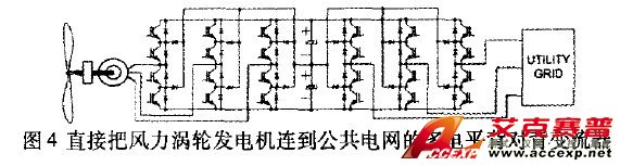 風(fēng)力渦輪發(fā)電機(jī)市場的趨勢是依據(jù)電壓和電流額定值,提高其標(biāo)稱功率(幾兆瓦)。這使多電平變流器剛好適合這種現(xiàn)代大功率風(fēng)力渦輪發(fā)電機(jī)的應(yīng)用。電壓額定值的提高,允許把風(fēng)力渦輪發(fā)電機(jī)的變流器直接連接到風(fēng)電場的配電網(wǎng)絡(luò),避免使用笨重的變壓器(見圖4)。