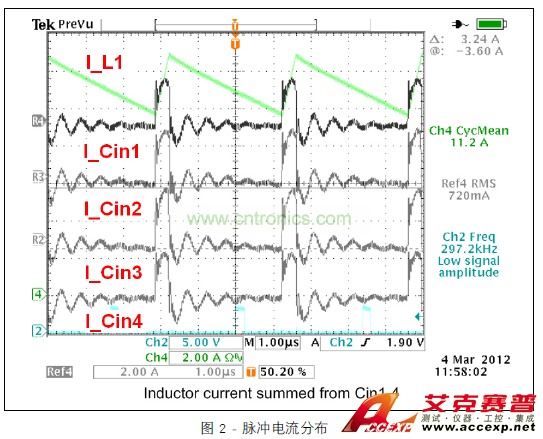 探討解決方案之前,讓我們先詳細(xì)地分析問題。系統(tǒng)的輸入電源主要傳送 DC 電流時(shí),降壓轉(zhuǎn)換器的各種輸入電容器將傳送不連續(xù)脈沖電流。此脈沖電流的設(shè)計(jì)基本上考慮每個(gè)轉(zhuǎn)換器的所需紋波和 RMS 電流。這很簡(jiǎn)單。意外發(fā)生在板上有多個(gè)轉(zhuǎn)換器的時(shí)候。任何轉(zhuǎn)換器不會(huì)正好從設(shè)計(jì)為其輸入電容器的電容器進(jìn)行反向電流。毋容置疑,大部分來自最近的低阻抗源,但實(shí)際上,開關(guān)階段也將從板上的整個(gè)電容器網(wǎng)絡(luò)吸取必需電流。