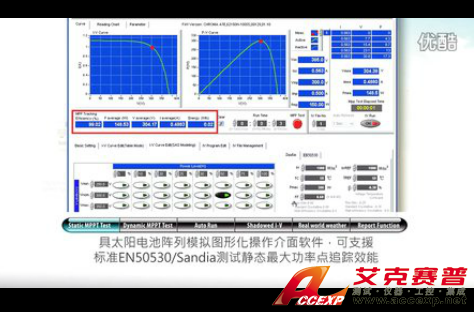 大功率光伏發(fā)電站系統(tǒng)建立興起于歐洲、日本、美國(guó)、中國(guó)及印度地區(qū),此系統(tǒng)內(nèi)最主要的兩部份為光伏陣列及光伏逆變器,因此光伏組件及光伏逆變器的效能好壞決定了此系統(tǒng)的長(zhǎng)期發(fā)電投資效益,此系統(tǒng)建立需考量實(shí)際建立區(qū)域運(yùn)轉(zhuǎn)下的長(zhǎng)時(shí)間氣候照度&溫度變化,目前有一技術(shù)要求的趨勢(shì)為建立一特定周期內(nèi)的實(shí)際氣候運(yùn)轉(zhuǎn)條件,測(cè)試光伏陣列的直流發(fā)電量及光伏逆變器的動(dòng)態(tài)最大功率點(diǎn)追蹤效能。于2010年5月31日歐洲地區(qū)公布最新EN50530:2010測(cè)試標(biāo)準(zhǔn),此標(biāo)準(zhǔn)針對(duì)并網(wǎng)型光伏逆變器的總效率及動(dòng)態(tài)最大功率點(diǎn)追蹤效能測(cè)試提出一測(cè)試程序,如低照度10%變化到中照度50%強(qiáng)度變化、中照度30%變化到高照度100%強(qiáng)度變化。