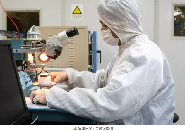 研究高精密度的器件,對實驗的環境要求相對更高。實驗者們進入工藝間實驗需要遵循嚴格的操作規則,每個人必須穿上自己的潔凈服,戴上口罩、手套,經過除塵的風淋室,才能最終進入到工藝間。每個人裹得嚴嚴實實的,乍一看還以為誤入了“大白”們的夢工廠。