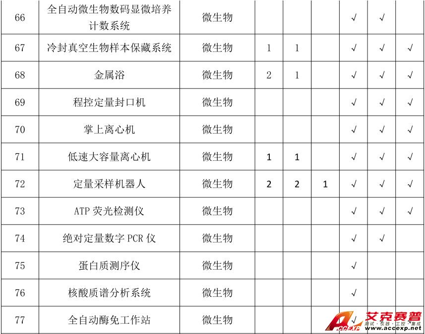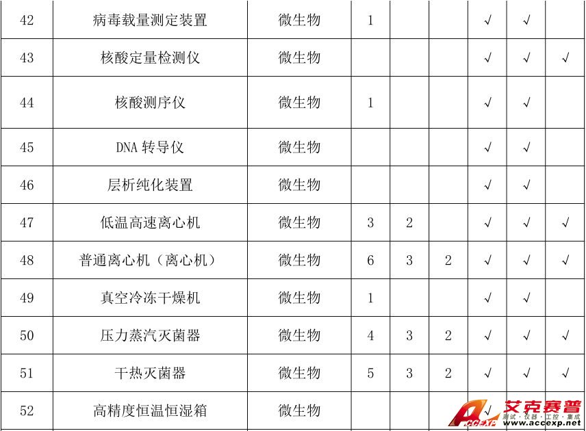 近期,國家衛(wèi)健委規(guī)劃司發(fā)布《國家衛(wèi)生健康委規(guī)劃司關(guān)于征求疾病預(yù)防控制中心建設(shè)標(biāo)準(zhǔn)(征求意見稿)意見的函》,就疾病預(yù)防控制中心建設(shè)標(biāo)準(zhǔn)征求意見。該標(biāo)準(zhǔn)包含了疾控中心實(shí)驗(yàn)室選址與規(guī)劃布局、建筑面積指標(biāo)、建筑標(biāo)準(zhǔn)、儀器設(shè)備及相關(guān)指標(biāo)等多項(xiàng)內(nèi)容。標(biāo)準(zhǔn)在《第六章 儀器設(shè)備及相關(guān)指標(biāo)》中要求省級(jí)、市級(jí)、縣級(jí)疾病預(yù)防控制中心根據(jù)所承擔(dān)的專業(yè)類別、工作類型、職責(zé)和任務(wù)應(yīng)配備的專業(yè)儀器設(shè)備參照附錄 B 執(zhí)行。國家級(jí)疾病預(yù)防控制中心的儀器設(shè)備,根據(jù)職能和需求配備。在《附錄 B 疾控預(yù)防控制中心實(shí)驗(yàn)室主要儀器裝備配備標(biāo)準(zhǔn)》列出了需配備的生命科學(xué)、物性測(cè)試、分析儀器等320類儀器。