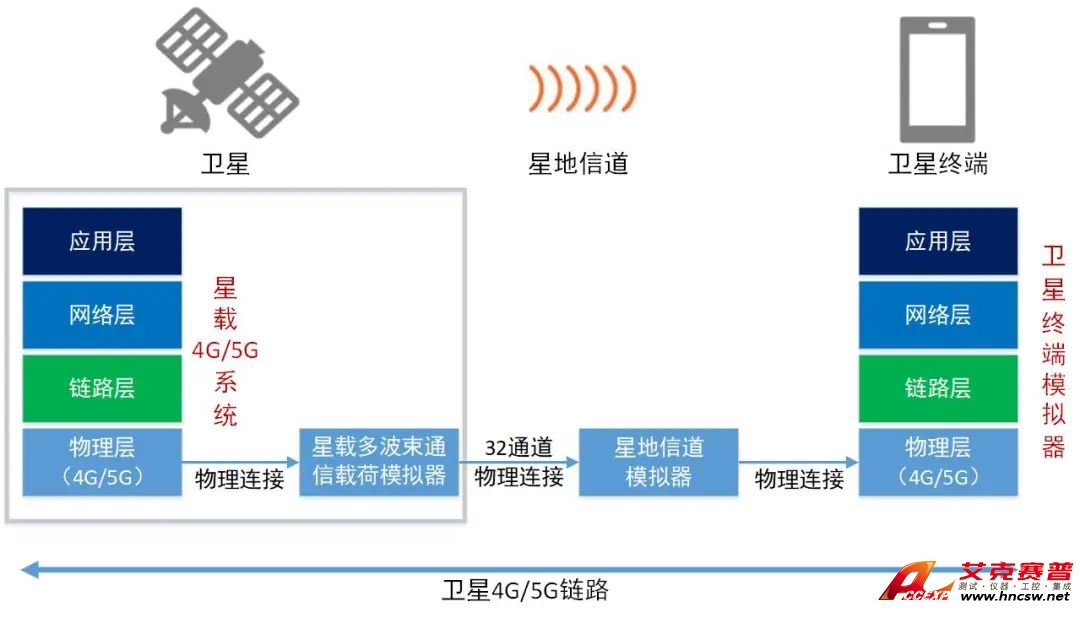類4G/5G體制下的星地視頻傳輸仿真系統由星載4G/5G系統、衛星終端模擬器、星地信道模擬器、星載多波束通信衛星載荷模擬器組成,用于仿真4G/5G體制下衛星通信載荷與地面衛星終端之間的視頻通信。星載多波束通信載荷模擬器仿真衛星上相控陣天線的32個陣元,實現32通道數字波束賦形。可支持擴展為64通道、128通道、256通道。