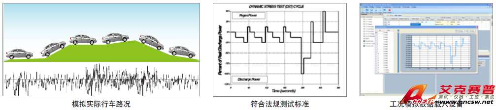支持動態工況仿真(Waveform)測試功能,仿真實際行車路況之電流或功率狀態,支持NEDC、FUDS、HPPC等法規測試標準