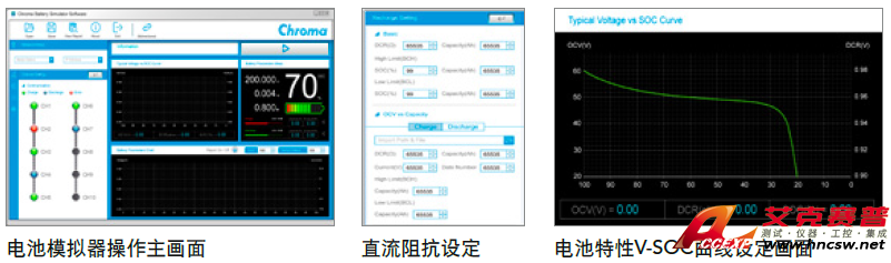 可選配電池仿真器功能,雙向電壓源可被充電或放電,可設定電池容量/直流阻抗/下載V-SOC曲線,適合使用于測試充電器、逆變器及馬達驅動器,附有電池仿真器專用軟件。