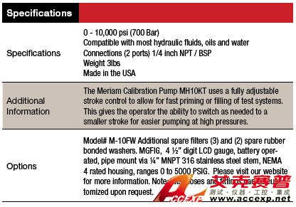 美國 Meriam MH-10KT系列液壓校準(zhǔn)泵的詳細(xì)介紹