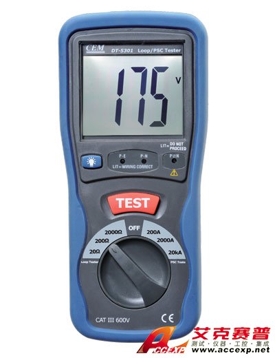 DT-5301 LOOP/PSC 測試儀是CEM設計的一款專業測量回路的儀表,具有高度的準確性和精確度,通過了EN61010-1,CATIII 1000V等國際安全標準認證。