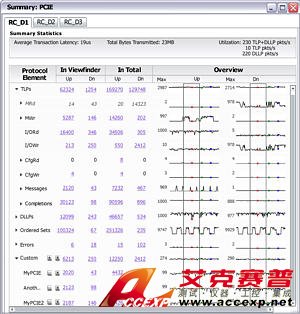 概況摘要窗口 (Summary Profile Window) 可確定系統(tǒng)狀況并識別感興趣的模式,如誤碼、TLP、DLLP、命令集等。