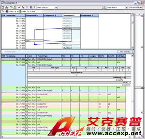 概要統(tǒng)計(jì)包括了各種有用信息,如平均傳輸?shù)却龝r(shí)間、傳輸?shù)目傋止?jié)數(shù)以及總線利用情況。創(chuàng)新的單個(gè)事務(wù)窗口有助于查看數(shù)據(jù)包級和事務(wù)級的協(xié)議行為,中間穿插物理層活動。事務(wù)處理拼接功能表明數(shù)據(jù)包參與了一次完整的事務(wù)處理或由于圖解錯誤而導(dǎo)致事務(wù)處理不完整。其他能力 (包括光標(biāo)鎖定多個(gè)數(shù)據(jù)窗口、通過鳥瞰法確定整個(gè)采集中看到的數(shù)據(jù)的相對位置、流程控制信用跟蹤和數(shù)據(jù)包的顏色編碼) 增強(qiáng)了系統(tǒng)級除錯功能。