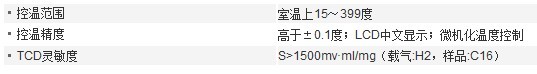 上分GC102ATGC102A氣相色譜儀包括GC102AT氣相色譜儀(主機),控溫范圍在室溫上15~399度,控溫精度高于±0.1度,LCD中文顯示,GC102ATGC102A氣相色譜儀可以實現(xiàn)微機化溫度控制,TCD靈敏度:S>1500mv·ml/mg(載氣:H2,樣品:C16)。