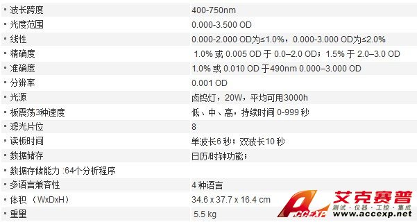 ● 內(nèi)置軟件的友好用戶面板,最多預設(shè)有64個終點法和動力學檢測程序(包括food safety tests ),功能強大的曲線擬和程序和統(tǒng)計學分析功能 自動的對照檢測、儀器初始化、數(shù)據(jù)分析和結(jié)果輸出。客戶可以很方便的編制、存儲和再使用各種程序