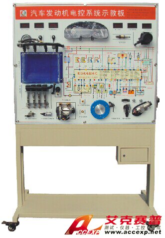 發動機電控單元、防盜控制單元、防盜鑰匙、發動機各類傳感器、發動機各類執行器、檢測端子、故障設置系統、大容量蓄電池或12V開關電源、大型彩色噴繪電路原理圖、控制面板、可移動臺架、使用說明書及任務驅動式實訓指導書等。