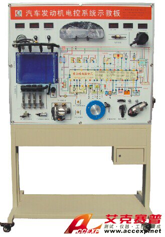 發動機電控單元、(儀表)防盜控制單元、防盜鑰匙、發動機各類傳感器、發動機各類執行器、檢測端子、故障設置系統、大容量蓄電池或12V開關電源、大型彩色噴繪電路原理圖、控制面板、可移動臺架、使用說明書及實訓指導書等。