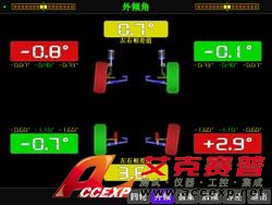 單獨的測量系統:(外傾角)功能畫面設計了,以車輪傾斜變化和顏色的區分不復雜,清晰及容易解說 | |