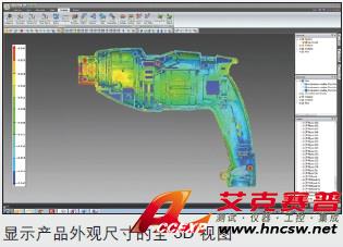 全局比較功能可提供產(chǎn)品外觀尺寸的全 3D 視圖。整個(gè)部件可與 CAD 模型進(jìn)行對(duì)比檢查,并用色彩映射高亮顯示需要關(guān)注的區(qū)域。還可使用彈出菜單、截面圖和幾何尺寸與公差(GD&T)庫進(jìn)行進(jìn)一步的研究和分析。用戶可根據(jù)需要讓設(shè)備自動(dòng)生成或簡易或詳細(xì)的測量報(bào)告。