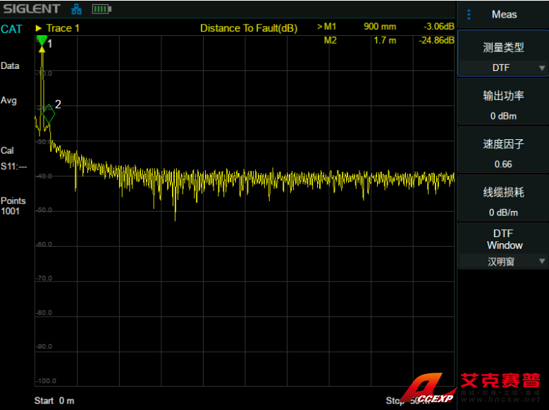SHA851A電纜和天線分析儀模式下可測量的頻率范圍為100 kHz~3.6 GHz;