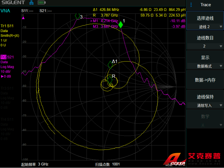 SHA851A顯示反射/傳輸系數(shù),回波/插入損耗,相位,群時延,駐波比,Smith圓圖,極坐標(biāo)圓圖等多種格式。