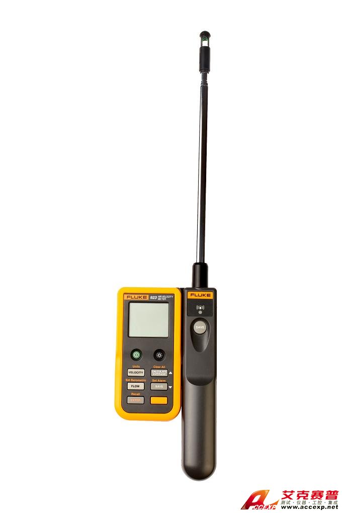 美國福祿克FLUKE923是一款可以分離顯示屏的熱敏風速儀測試儀,顯示屏和傳感器一體時采用紅外通訊方式,當分離時采用無線通訊方式。