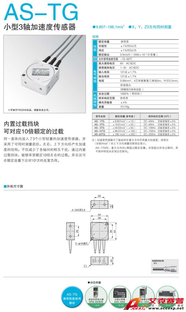 簡介:KYOWA AS-TG 小型3軸加速度傳感器