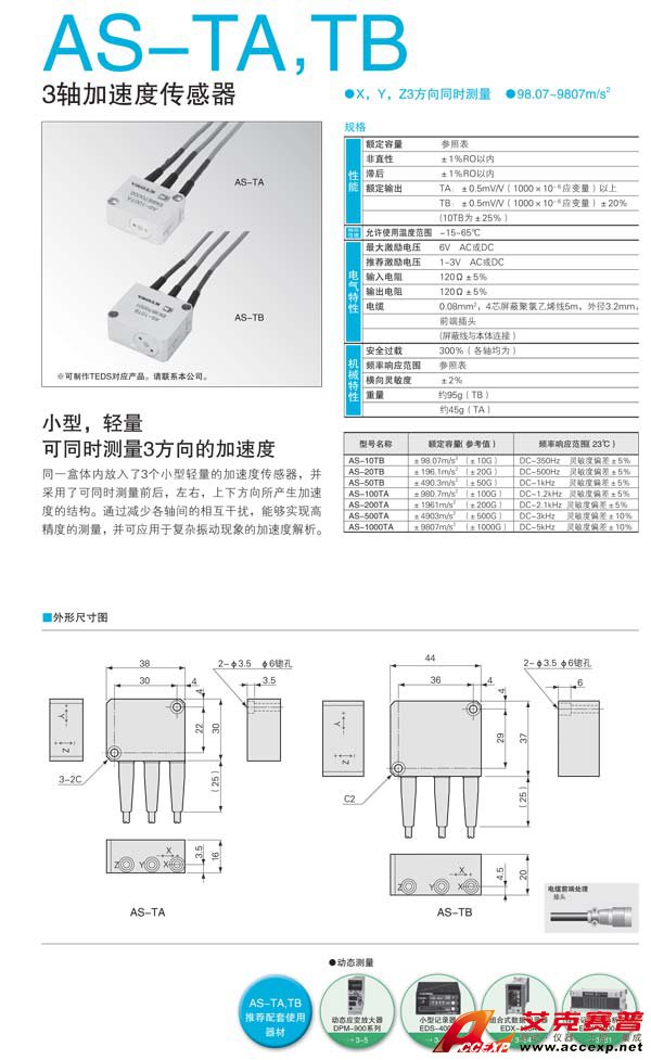 簡介:KYOWA AS-TA,TB 3軸加速度傳感器
