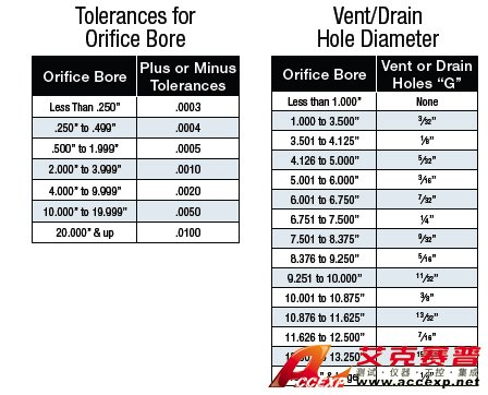 Bore – Orifice bore tolerance in strict accordance with AGA. Gas Measurement Committee Report No. 3, ASME Fluid Meters Committee Report, and with other societies’ recommendations.