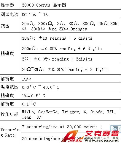 GW GOM-802微電阻測試儀最小讀數(shù)為1uOhn 微歐 ,具有30000 Counts 顯示,精密度高達 0.05%Hi/Lo 比較以及限制百分比設定可任意選擇自動/手動操作模式可選擇連續(xù)/觸發(fā),GW GOM-802微電阻測試儀量測模式采用四線量測技術, GW GOM-802微電阻測試儀提供高精準度量測自動記憶前次關機時設定狀態(tài)PASS / FAIL 警告設定Scan, Handler 介面 (標準)RS-232C, GPIB 介面 (選購)