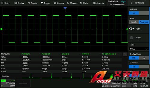 自動測量 | 數(shù)十種自動測量功能,支持測量統(tǒng)計、Gating 測量、Math測量、History 測量、Ref 測量。支持對測量參數(shù)的直方圖和趨勢圖統(tǒng)計 |