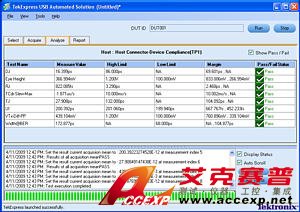 TekExpress USB3.0自動測試軟件(選項USB-TX)- TekExpress USB 3.0提供了自動、簡單和高效的測試方法,滿足SuperSpeed 通用串行總線(USB)規范要求的USB3.0 發送端r、接收端、host 和 device 一致性測試。該應用程序將測試自動化,包括根據被測件 類型、測試類型、測試點和使用的探頭選擇合適的CTLE和參考通 道模擬濾波器、測量項。另外,USB-TX和DPOJET配合使用,可 以用于調試和進一步檢定USB3.0 方案