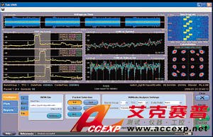 當需要對射頻或者基帶信號進行矢量信號分析時,可選的SignalVu應用程序提供了時間相關的多域(頻率、時間、相位、調制)分析能力。SignalVu測量和示波器的時域采集/觸發完全相互關聯。時域事件,如給射頻子系統發的命令,可以被用做觸發事件,此時子系統中射頻信號可以在頻域顯示中看到。