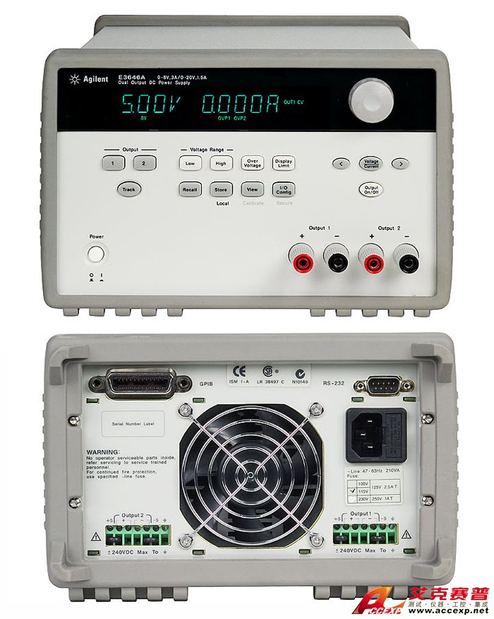 • 電壓:<0.05% + 5 mV(對于E3646/47/48/49A的輸出2:<0.1% + 25 mV)