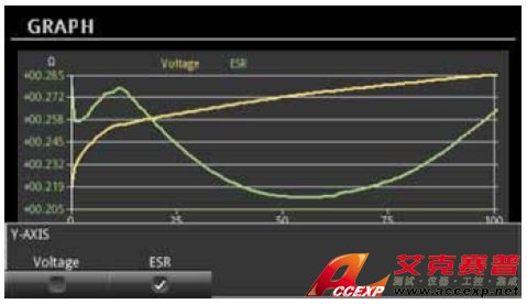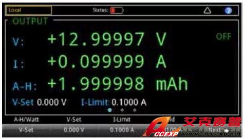 在2281S 電池測試功能中,可以在電池上執行充電/ 放電測試。充電電流在0 ~ 6A 之間,最大放電電流是1A。在充電期間,可以設置內部6 位半萬用表的采樣間隔, 連續采樣充電電流和電壓。通過這種方式,可以自動計算電池的容量及其內部電阻 (ESR 值)。