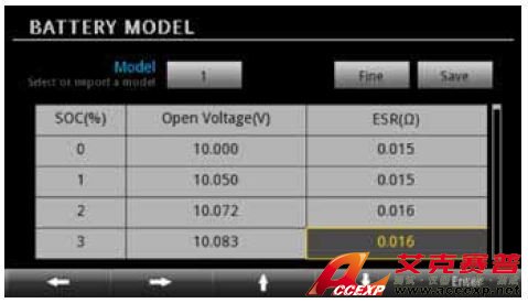 請參閱電池型號的各重要參數,其中包括開路電壓、內阻、剩余電量和充電狀態。