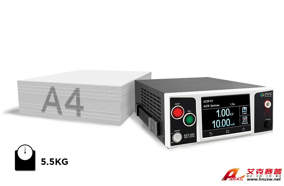 EST-300系列新一代耐壓測試儀擁有先進的緊密尺寸設計,并同時保有其強大的性能。不僅將交流耐壓(ACW)、直流耐壓(DCW)和絕緣阻抗(IR)功能整合到單一的機臺,其尺寸與重量的輕便優(yōu)勢利于任何空間的擺設配置。此外,透過儀器互連技術設計,更可以擴充功能連接接地阻抗(GB)測試儀,從而形成更完整的測試系統(tǒng),提供更全面的安規(guī)測試解決方案。