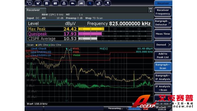 簡介:主要特點EMI 測試接收機與信號/頻譜分析儀集于一體加權檢波器:PK+、QPK、CISPR 和 RMS 平均值 (CISPR 16-1-1) 分辨率帶寬符合 CISPR 16-1-1 和 MIL-STD 標準預選和前置放大器基于 FFT 的...