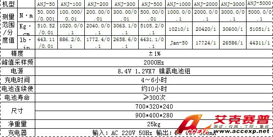 測量范圍/分度值 | N·m | 50.000/0.001 | 100.000/0.01 | 200.00/0.01 | 300.00/0.01 | 500.00/0.01 | 1000.0/0.1 | 2000.0/0.1 | 3000.0/0.1 | 5000.0/0.1 |
